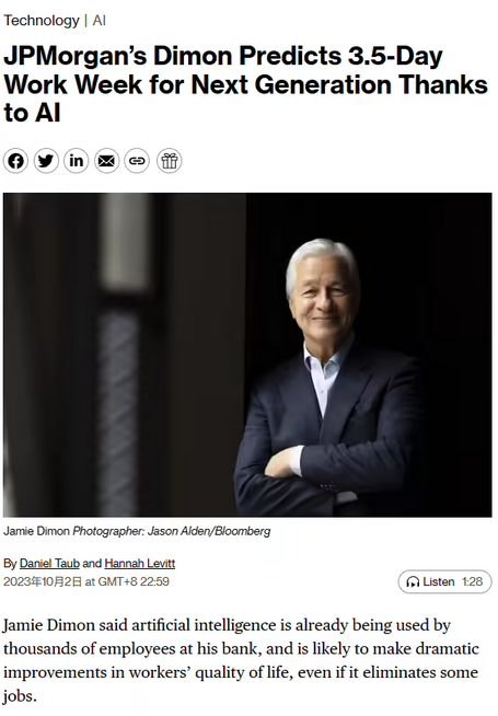 據彭博社昨日晚間報道,摩根大通 CEO Jamie Dimon 在昨日接受彭博 TV 采訪時談及自己對 AI 的看法。