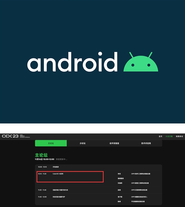 根據大會日程,11月16日上午10:10-11:20為ColorOS 14發布環節,OPPO軟件工程事業部副總裁李杰、OPPO數智工程事業部總裁劉海鋒等將進行演講。