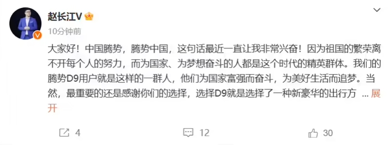 騰勢銷售事業部總經理趙長江今日在微博中宣布,截至目前,騰勢 D9 的用戶已超過 10 萬 +。騰勢 D9 此前已迎來專屬感恩季福利: