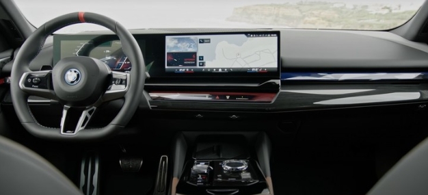 如果說外觀是復古和現代化的結合,那么在車內,寶馬就將現代化進行到底了。坐進 i5 M60 的車內,寶馬幾乎移除了大部分的實體物理按鍵,取而代之的是更多的虛擬按鍵。Christopher Weil 解釋道,去物理化會是現代感一種很好的表現手段,借助中控屏幕以及虛擬按鍵,某些功能能夠得到更精確的控制,而大部分的車載功能可以由中控+語音承擔。