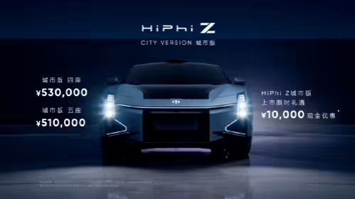 前不久高合 HiPhi Z 的新增車型 ——HiPhi Z 城市版已在 10 月 14 日晚正式上市,四座 / 五座車型售價分別為 53 萬元 / 51 萬元,號稱上市即交付。