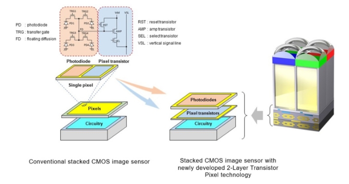 官方資料顯示,雙層晶體管像素技術可以將飽和信號量約提升至原來的2倍,擴大動態范圍的同時降低噪點,從而顯著提高成像性能。