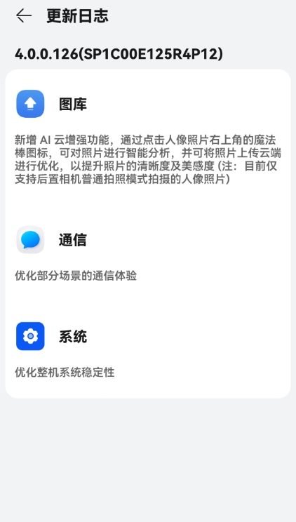 除此以外,126版本更新還優化了部分場景通信體驗、優化了整機系統穩定性。