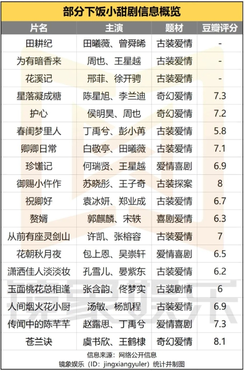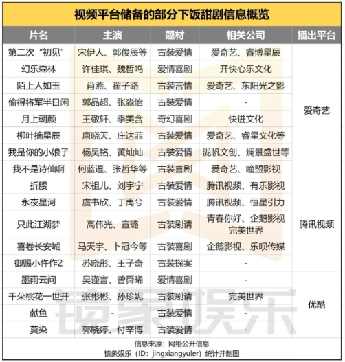 另一方面,此類內容多為中腰部劇集,在平衡平臺內容布局結構上也是相當重要的板塊。且在市場受歡迎程度上,此類內容的題材優勢更利于藝人養成,此前,趙露思、丁禹兮、虞書欣、王鶴棣、田曦薇等藝人,都借助相關劇集實現聲量大幅增長。