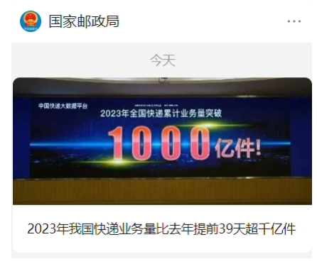 2023 年我國(guó)快遞業(yè)務(wù)量突破 1000 億件,比去年提前 39 天 09:55:19