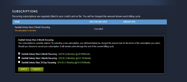 任何在 Steam 上以阿根廷比索或土耳其里拉進行了訂閱的客戶,如其訂閱仍然有效,則其訂閱將在有效訂閱期結束后自動終止。您可以在 Steam 的訂閱管理頁面中重新以美元訂閱。要進入此頁面,請前往 Steam 客戶端,在右上角的用戶名下選擇“賬戶詳情”,然后點擊頁面頂部的“管理訂閱”鏈接。