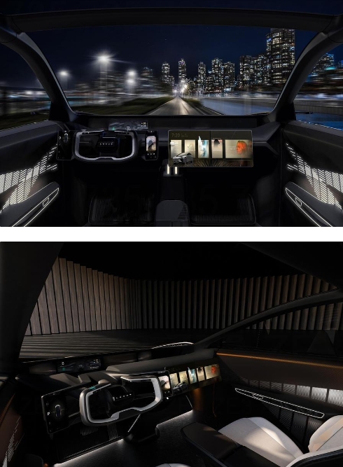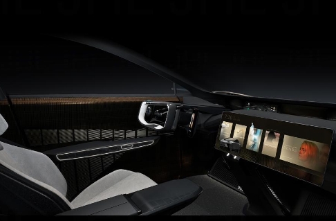 內飾方面,該車采用了 yoke 方向盤,方向盤兩邊各有一個數字控制面板,左側面板用于控制汽車的主要系統,如駕駛模式、駕駛輔助和安全系統,右側面板則控制娛樂和通風等功能。前排乘客還有一個“超寬”顯示屏,可以運行娛樂和其他應用。