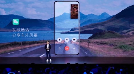 發布會上,金凡演示調用汽車攝像頭進行視頻通話小米