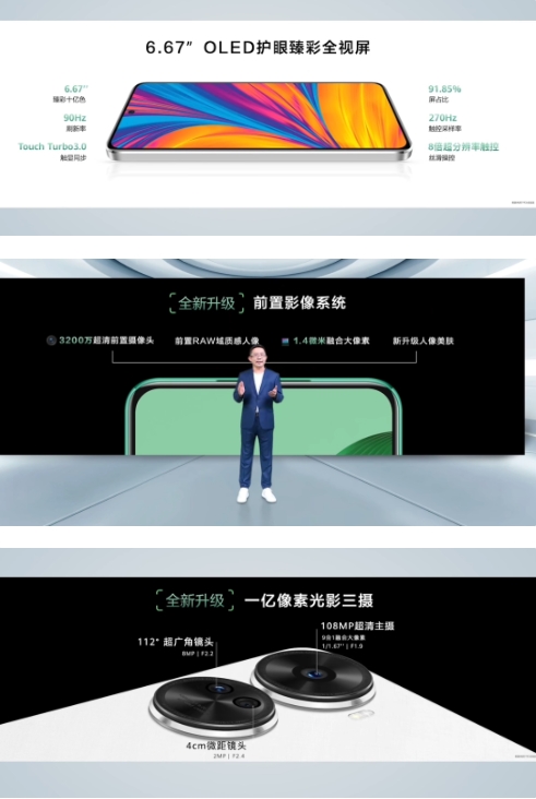 影像方面,這款新機(jī)前置 3200 萬像素鏡頭,后置 1 億像素光影三攝系統(tǒng):1.08 億像素主攝(F1.9 光圈、1/1.67 大底)+200 萬像素微距鏡頭(4cm)+800 萬像素超廣角鏡頭(112°),支持全場景 RAW 域 2.0。