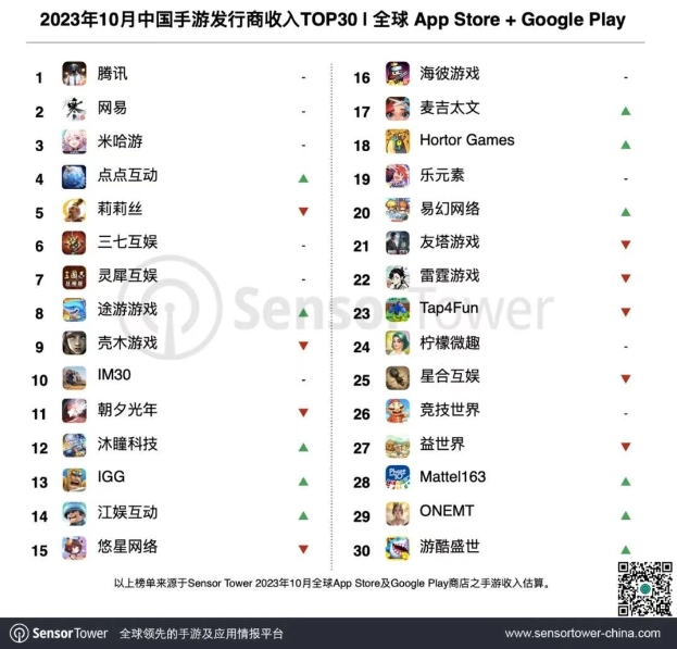 10月中國手游發(fā)行商全球收入排行榜:網(wǎng)易《蛋仔派對》重回中國iOS手游暢銷榜前十 09:01:53