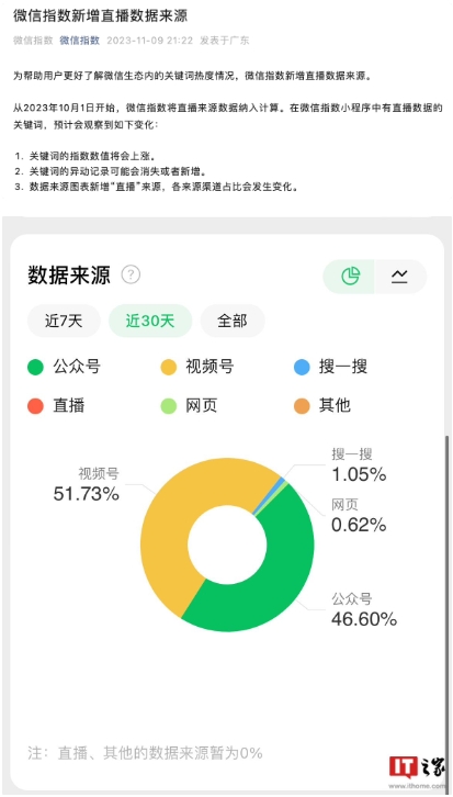 從微信指數官方公眾號得知,微信指數目前已經新增“直播數據來源”這一變量。