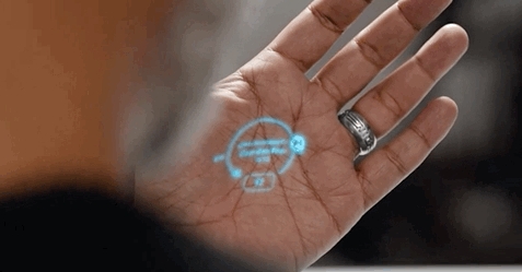 可以通過語音來詢問路線,然后地圖就會呈現(xiàn)在手掌上,抬手即可看地圖,捏手指可切換界面。