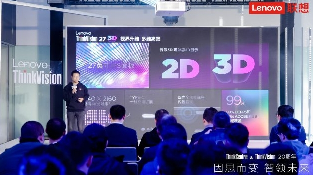 在以“因思而變 智領未來”為主題的Think Centre和ThinkVision 20周年紀念活動上,聯想正式發布了業內首款2D/3D 可切換裸眼3D顯示器——聯想ThinkVision 27 3D。該產品首次將裸眼2D、3D可切換技術應用在顯示器領域,并拓展了3D技術多元化應用場景,展現了聯想ThinkVision深厚的產品創新能力,彰顯了聯想AI內嵌的智能終端引領用戶體驗升級的強大實力。