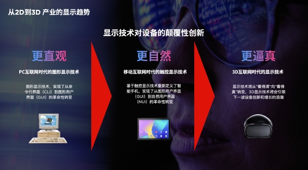 當前,3D互聯網時代,顯示技術的進化開始由“看得清”向“看得真”轉變,人們透過屏幕看到鮮活立體影像,真正實現所思即所見,所見即所得。盡管3D技術為新一代顯示設備錨定了方向,但是技術的成熟還需要在硬件設備上真正落地和適配,并滿足用戶多元化場景需求,才能真正讓技術創新用戶體驗。
