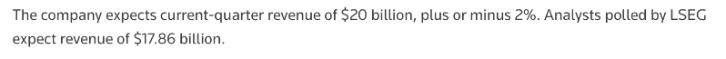 英偉達今日作出預測,隨著供應鏈問題的緩解,第四財季收入將超過華爾街的目標,達 200 億美元(備注:當前約 1434 億元人民幣)。