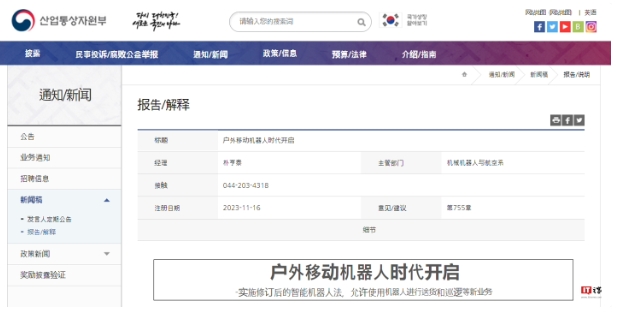 韓國“修訂版”智能機(jī)器人法案全面生效:授予行人身份,可在人行道通行 10:13:49