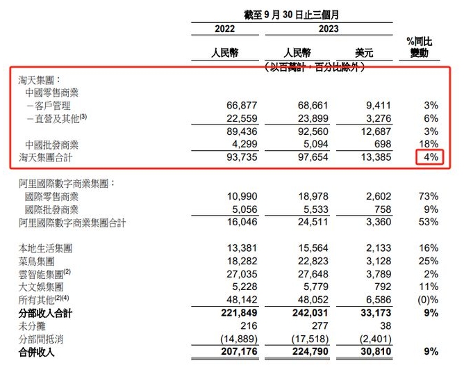不過(guò),紅星資本局注意到,從同比增速來(lái)看,淘天集團(tuán)以4% 排在倒數(shù)第二,僅優(yōu)于云智能集團(tuán),而阿里巴巴集團(tuán)在最新財(cái)報(bào)中也披露稱不再推進(jìn)云智能集團(tuán)的完全分拆。