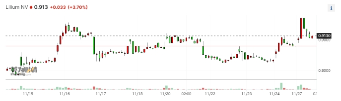 消息公布后,在納斯達克上市的Lilium股價一度跳漲超10%,最高報每股0.970美元?,F漲幅收窄至3.70%,報每股0.913美元。