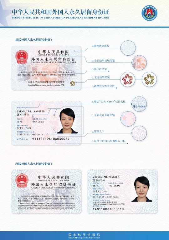 新版永居證在保持現版基本式樣的基礎上,新加入了體現國家標識的五星元素,優化美化版式布局,采用更為先進的防偽技術,改進提升了證件信息存儲和應用管理服務手段。新版永居證升級技術、增強功能,新證啟用后,持證人可通過互聯網平臺線上辦理交通出行、生活消費、金融等私人事務,將進一步便利持證人在境內工作、學習、生活。