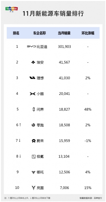 每月月初又到了各家新能源車企放榜的日子,11月各家交付數(shù)據(jù)也正式出爐。