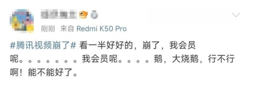 相關(guān)話題登上熱搜后,引發(fā)了不少網(wǎng)友吐槽。“還以為我手機(jī)出問題了,又是重新登陸又是清理垃圾又是重啟手機(jī)的,結(jié)果問題在騰訊這兒呢。”“看到一半說會員沒了,我昨天剛充的會員......”“我說為什么我會員不見了呢!起來又是關(guān)電視,開電視,找客服的!”“騰訊視頻,賠我VIP!”