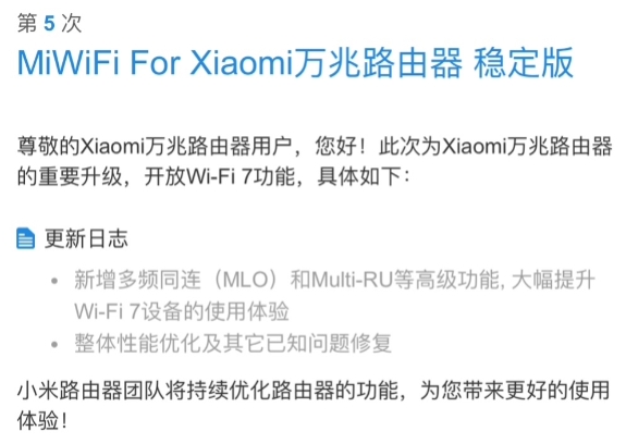 小米官方稱,“Wi-Fi 7,不只是速度,更是系統性的體驗躍升!多路連接、動態優選、更低延遲、更強抗干擾。為將來的娛樂、辦公,帶來更浩瀚的想象空間。”