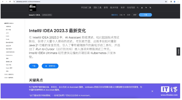 在 IDEA 下載頁面,JetBrains 表示為了向用戶提供高水準、多元化、本土化的 AI Assistant 服務,JetBrains 目前正在與阿里云通義大模型商洽未來的合作事宜,為中國開發者帶來 AI Assistant 服務。