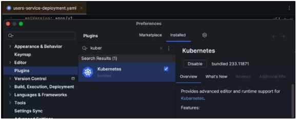 IntelliJ IDEA Ultimate 2023.3 捆綁了 Kubernetes 插件,因此,用于開發基于 Kubernetes 的應用程序的所有插件功能均開箱即用。這項集成簡化了直接從 IDE 部署、調試和管理 Kubernetes 集群的工作流。