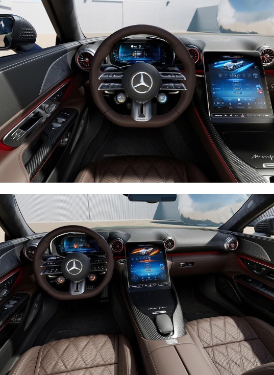 得益于強大的動力系統,SL 63 S E Performance 的 0-100 公里 / 小時加速時間僅為 2.9 秒,最高時速可達 315 公里 / 小時,比邁凱倫 750S 和保時捷 911 Turbo S 敞篷版僅略慢一點。