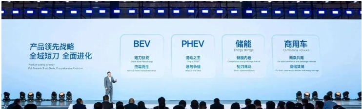 基于產品領先戰略,蜂巢能源針對 BEV、PHEV、商用車和儲能不同細分市場推出了“全域短刀,全面進化”戰略,并在乘用車領域全球首推全系短刀快充迭代升級產品,覆蓋 2.2C 到 5C 全場景應用。