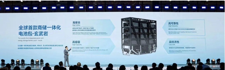 在商用車賽道,蜂巢能源采用商乘共用和商儲共用策略,推出了全球首款商乘共用短刀電池和全球首款商用車短刀標箱,并基于該款商用車短刀電芯,推出全球首款商儲一體化電池包 —— 玄武巖。該款產品采用了高安全短刀電芯,集成度更高,號稱減少了約 15% 的零部件數量,成本進一步降低,同時還可做到針刺不起火不冒煙,并根據場景可實現不同電量的智能調用,滿足主流整車企業及儲能企業在不同應用場景下的互通互換。