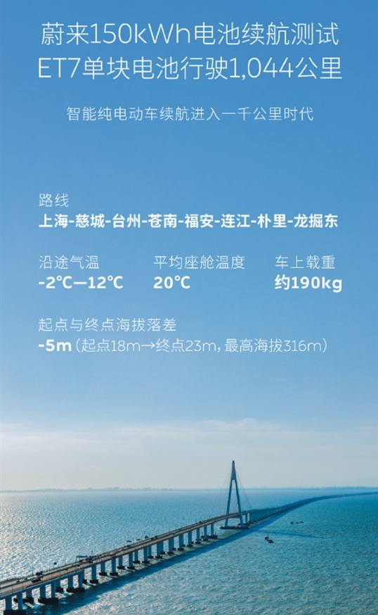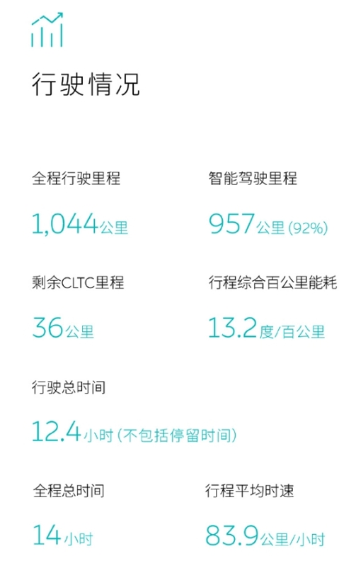 蔚來官方微博放出的數據來看,經過超14小時行駛后,此次全程行駛里程1044公里,平均時速83.9公里/小時,平均百公里能耗13.2kWh。