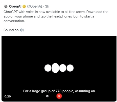 OpenAI宣布將ChatGPT with voice語音功能免費對所有用戶開放。