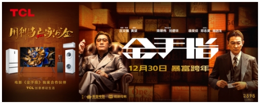 電影《金手指》由英皇出品,將于12月30日全球同步上映,獨家合作伙伴TCL邀您親臨影院,見證兩大天王影帝同臺飆戲,一起“暴富跨年“。