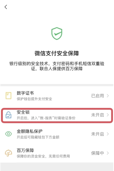 設置方式:用戶可通過【服務】-【錢包】-【消費者保護】-【安全保障】-【安全鎖】內設置使用面容、指紋或手勢密碼。