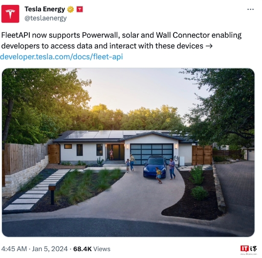 特斯拉 Tesla Energy 今天在 X 平臺發布貼文,宣布 FleetAPI 現已支持 Powerwall 能源系統、solar 太陽能板及 Wall Connector 壁掛式連接器。