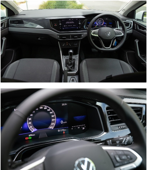 入門級 Polo Life 標配 15 英寸合金輪轂、自動 LED 大燈和感應雨刮器,內部配備 8.0 英寸儀表盤、8.0 英寸信息娛樂觸摸屏、有線 Apple CarpPlay 和 Android Auto、無線智能手機充電以及手動空調系統,提供七個安全氣囊、帶行人和騎車人檢測的自動緊急制動、車道保持輔助、定速巡航和倒車影像。