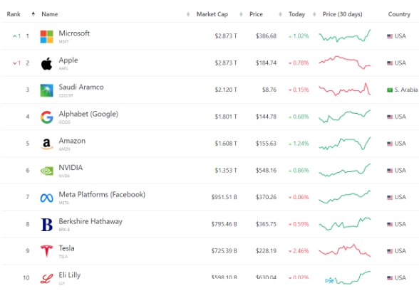 微軟正式超越蘋果 成為全球市值最高的公司 09:35:49