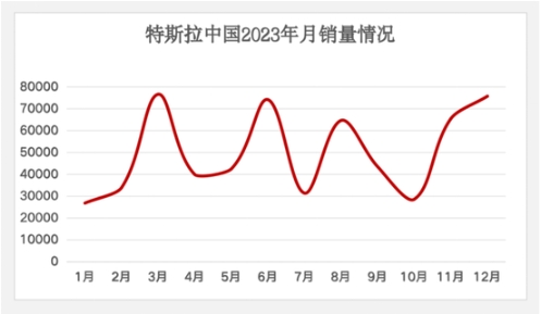 根據(jù)乘聯(lián)會(huì)的數(shù)據(jù),10月~12月,特斯拉中國(guó)的零售銷(xiāo)量分別是2.86萬(wàn)臺(tái)、6.55萬(wàn)臺(tái)、7.58萬(wàn)臺(tái)。2023年,特斯拉勉強(qiáng)壓線完成全球180萬(wàn)輛的銷(xiāo)售目標(biāo)。