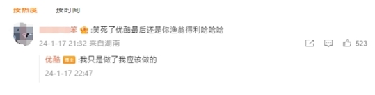 優(yōu)酷官微還在評論中表示:“我只是做了我應(yīng)該做的”。