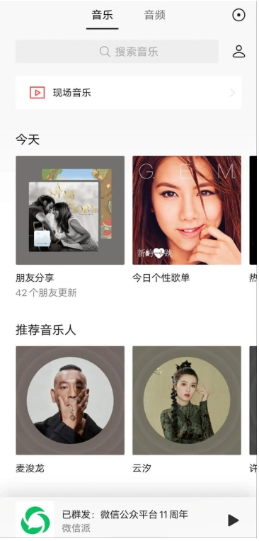 此后,微信又在音樂(lè)功能的基礎(chǔ)上加入了音頻功能,使得微信內(nèi)的公眾號(hào)文章、視頻號(hào)等內(nèi)容,都可以作為音頻供用戶使用,進(jìn)一步豐富了微信的音樂(lè)服務(wù)體系。