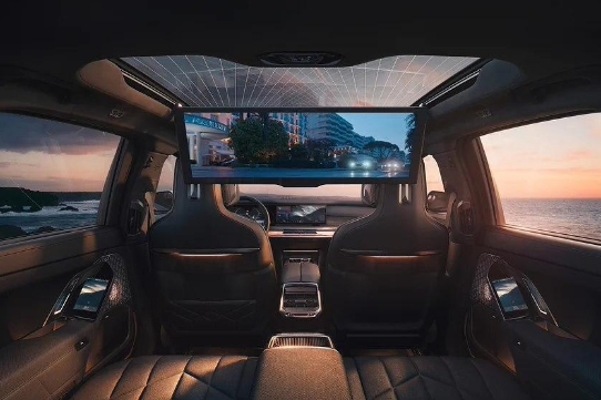 最簡單的解決方案是使用全景玻璃車頂,與車窗相結合,應該足以向暈車乘客的大腦傳達運動的效果。然而,由于寶馬會使用一些吊頂顯示器,玻璃車頂的作用就被減弱了。寶馬的解決方案是讓車頂看起來是透明的,對于配備可折疊吊頂顯示器的汽車,可以通過現有屏幕上顯示的圖像來實現這一點,或者可以將圖像投影到天花板上。