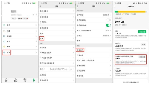 具體路徑:微信底欄「我」-設置-通用-存儲空間-資源文件和其他賬號的聊天記錄。