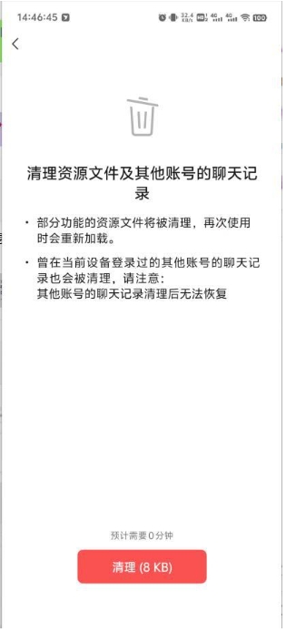 要是這兩個清理選項能夠再一分為二就好了,畢竟有時候我們只需要清理資源文件,并不是清理聊天記錄嘛。
