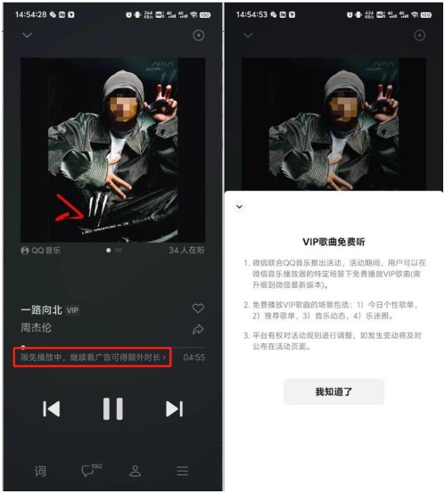 微信「音樂」的VIP歌曲來源于QQ音樂,目前官方還沒說明活動截止時間,大伙早聽早享受。