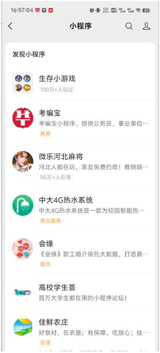 包括生存小游戲、考編、麻將、熱水系統、婚介、高校學生論壇以及農莊食材等等。