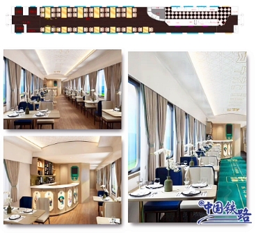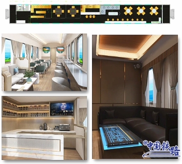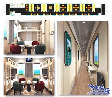 該趟專列可提供休閑度假、美食觀光、研學(xué)旅行等多種主題,編組 17 輛,全列定員 466 席,包括高級(jí)軟臥 3 輛、高級(jí)硬臥 10 輛、餐車 1 輛、多功能娛樂車 1 輛、宿營(yíng)車 1 輛、發(fā)電車 1 輛。