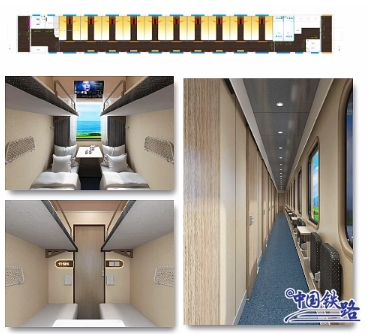 什邡居舍?高級(jí)硬臥共有 10 個(gè) 4 人包間,內(nèi)設(shè)茶桌、收納倉(cāng)電視、呼叫器、充電插座。