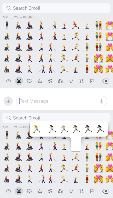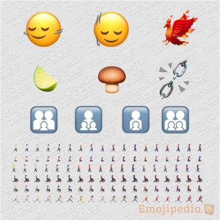 本次更新共計新增 118 個 Emoji,包括 6 個全新 Emoji,4 個無性別區(qū)分的家庭 Emoji。此外還有 6 個現(xiàn)有人物表情符號的新方向區(qū)分版本,算上性別和膚色的變化,共有 108 個新表情符號。