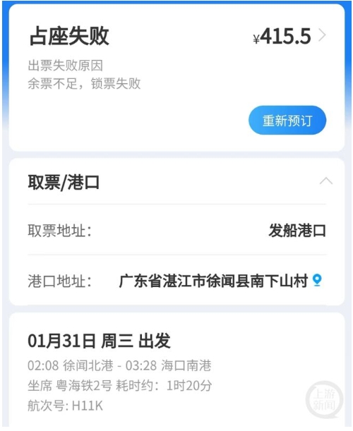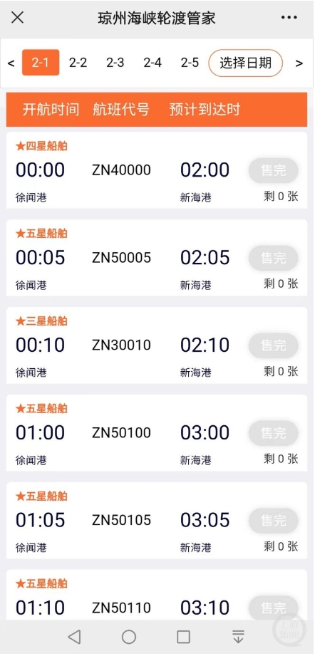 預(yù)訂平臺(tái)顯示,近期徐聞港至??诘男履茉窜囆推币咽弁辍F脚_(tái)截圖